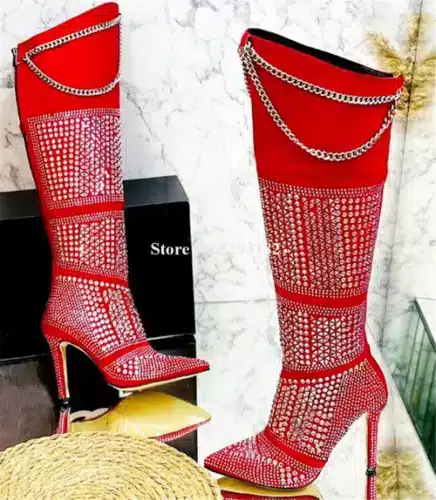 $238Select options This product has multiple variants. The options may be chosen on the product pageWomen Luxurious Rhinestones Chains Knee High Boots Bling Bling Pink